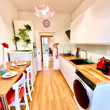 This 89 m² apartment offers an equipped kitchen with a fridge, an oven, and kitchenware, along with coffee and tea makers. This apartment is near Via Passo Rolle - Via Feltre bus stop.